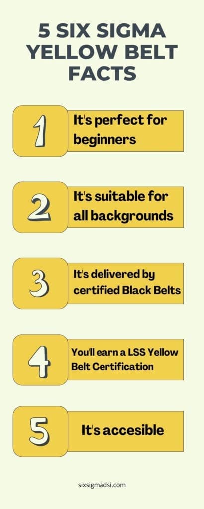 - Six Sigma Yellow Belt holders support project teams with problem-solving tasks.