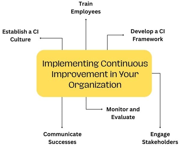 To successfully implement continuous improvement, organizations should consider the following steps: