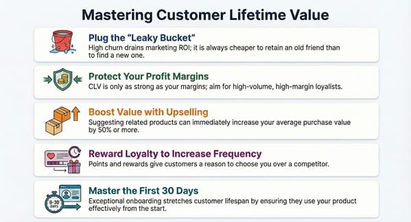 Here is the thing: not all customers are equal. Some people are “high value” because they buy often and stay loyal. Others might cost you more in support and returns than they ever spend. By using CLV, you can spot the “keepers” early on.