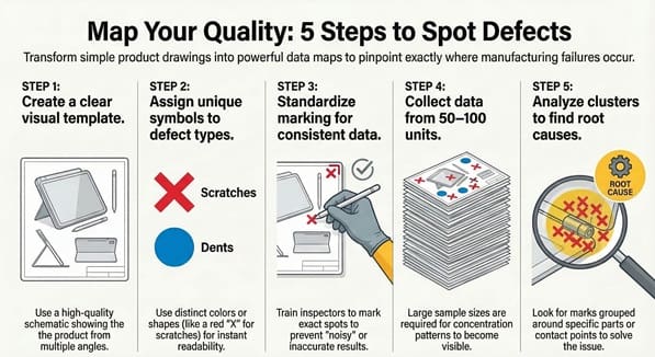 Creating a Defect Concentration Diagram doesn’t require a PhD in statistics. In my experience, the simpler you keep it, the more likely your team will actually use it. We’ve all been there—starting a complex project only to have it fail because the data collection was too hard. Let’s avoid that.