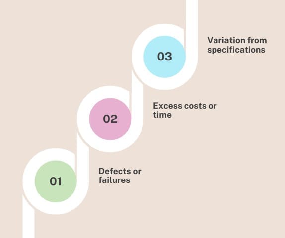 - Variation from specifications: Any inconsistency that affects customer satisfaction.