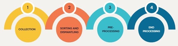- End Processing: This involves refining and extracting metals and other valuable materials for reuse.