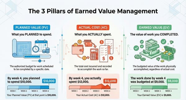 The basic principle of Earned Value Management is simple. It does not just look at your spending. It looks at the value of the work you earned with that spending. This leads to a clear and objective assessment of project health.