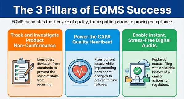 EQMS software manages the versions of your most important files. Have you ever worked on an old version of a file by mistake? In a regulated industry, that mistake costs millions. The software ensures only the latest, approved version is available. It tracks who opened the file, who edited it, and who signed off on it.