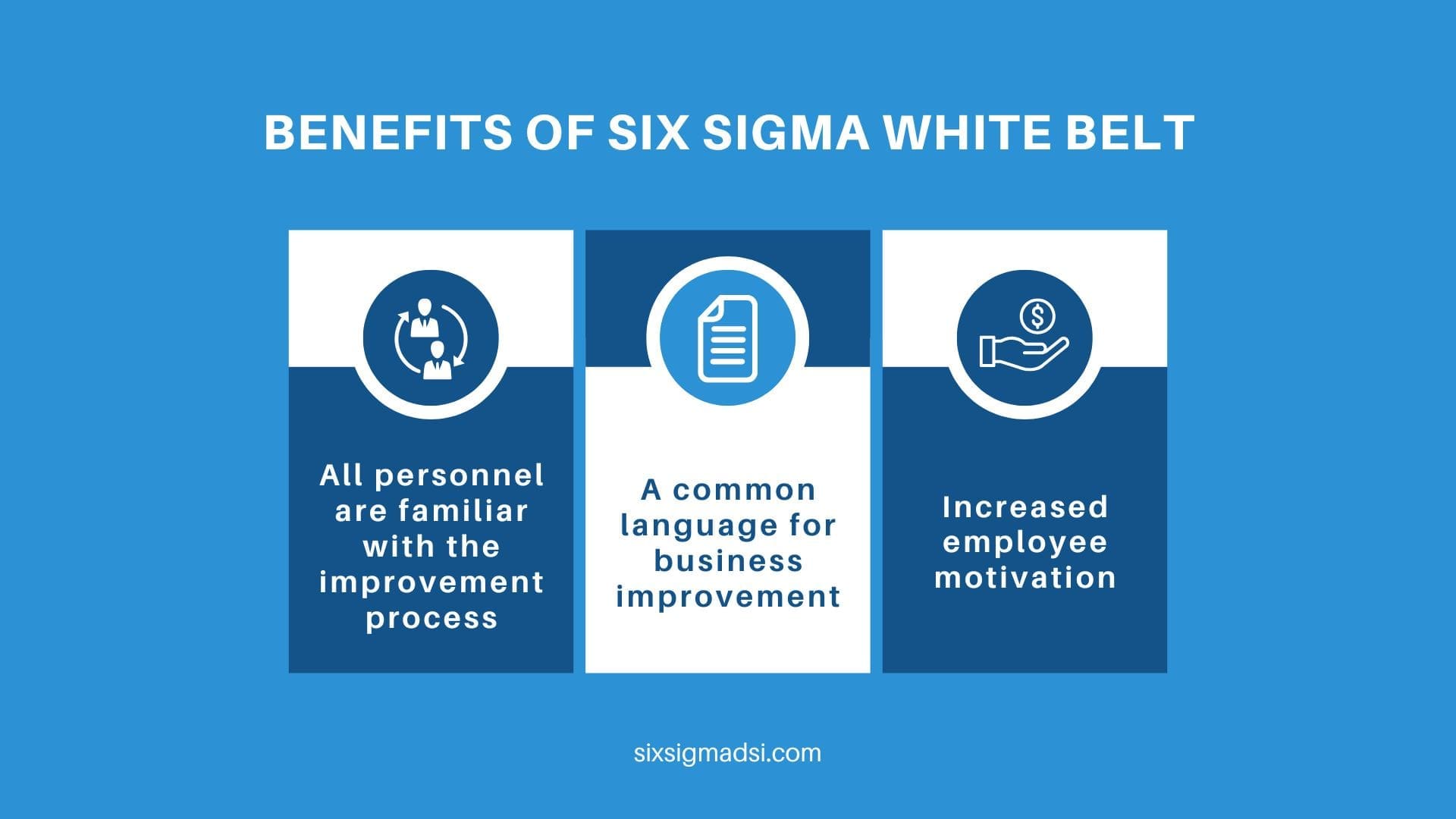 The Lean Six Sigma White Belt certification training provides information about the basic concepts of Lean Six Sigma. White Belts are able to help with organizational change management and can join local problem-solving clubs that support projects. Professionals can also earn Six Sigma Green and Black Belt certificates, which can lead them to higher ranks and better jobs.