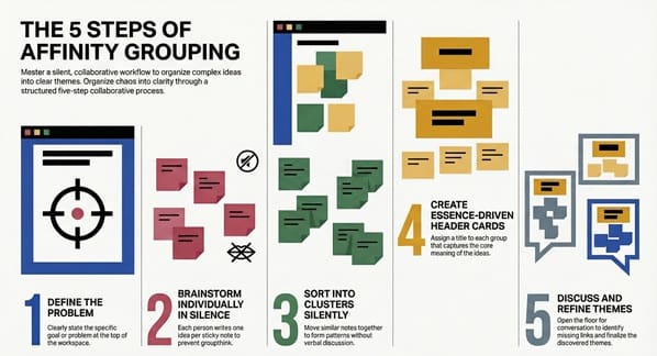 In my experience, the best ideas don’t always come from the loudest person in the room. They come from spaces where people feel safe to share. Whether you are sorting sticky notes on a wall or building a support network for employees, this method brings order to chaos. It’s roughly about finding common ground.