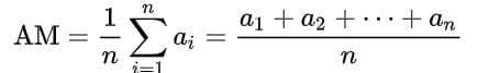 The most common type is the arithmetic mean. If n numbers are given, each number denoted by ai (where i = 1,2, …, n), the arithmetic mean is the sum of the as divided by n or