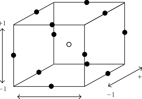 - Each factor, or independent variable, is placed at one of three equally spaced values, usually coded as −1, 0, +1. (At least three levels are needed for the following goal.)