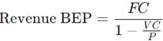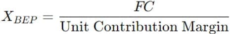 Where XBEPX_{BEP}XBEP is the break-even quantity, FCFCFC is fixed costs, PPP is selling price per unit, and VCVCVC is variable cost per unit.
