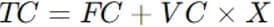 Here, FCFCFC represents fixed costs, VCVCVC denotes variable cost per unit, and XXX is the number of units sold.