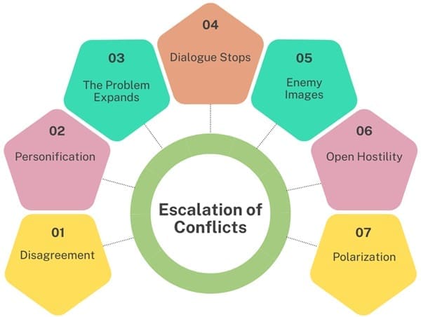 A key turning point in its escalation is the stopping of dialogue. Once communication ceases, resolution becomes exceedingly difficult. Without open lines of communication, both parties rely on their assumptions. These assumptions and grievances fuel the conflict further.