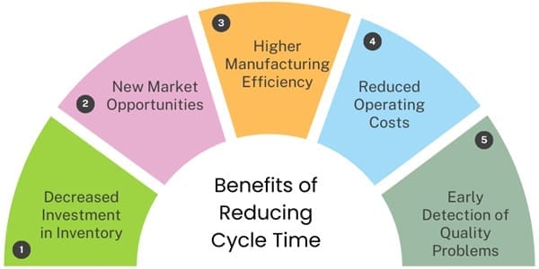 - Decreased Investment in Inventory: Reducing cycle time decreases the investment in finished goods, work-in-progress (WIP) inventory, and the financing of receivables.