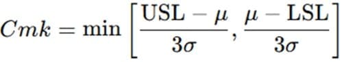 Cmk = min[(USL – μ) / (3σ), (μ – LSL) / (3σ)]