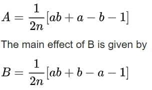 In factorial designs, thus two levels each of factor A and B in a factorial design, A and B be can be calculated given by