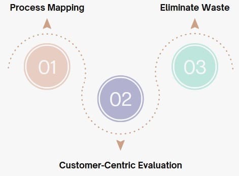 After mapping the process, businesses should evaluate which activities directly contribute to customer value. Ask yourself questions like: Does this activity make the product more desirable or usable for the customer? Does it meet customer expectations or improve customer satisfaction?