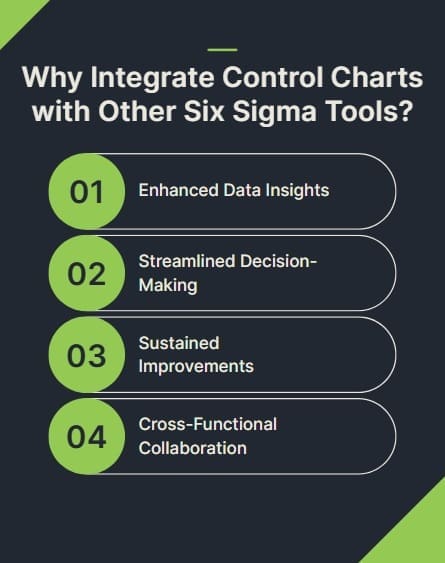 Integrating control charts with other Six Sigma methodologies creates a robust system for process optimization. Here’s why: