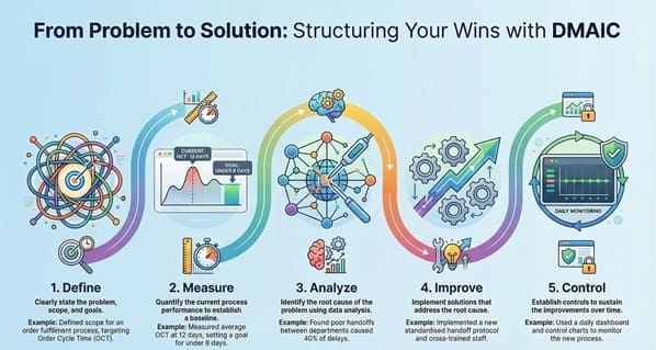 - Problem-Solving: You use a structured methodology, such as DMAIC (Define, Measure, Analyze, Improve, Control), to resolve issues systematically.