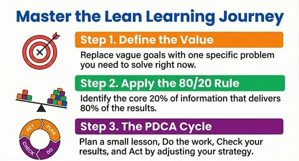 Mastering lean learning isn’t about being perfect; it’s about being effective. It’s about respecting your own time and your brain’s limits. By focusing on “pulling” information when you need it and applying it immediately, you’ll find that you grow much faster than those stuck in old-school study habits.