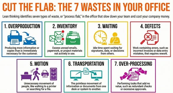 In addition to the traditional seven wastes, administrative environments often struggle with three specific kinds of process flab that are hard to spot. Addressing these is essential for a high-performing Lean Office.