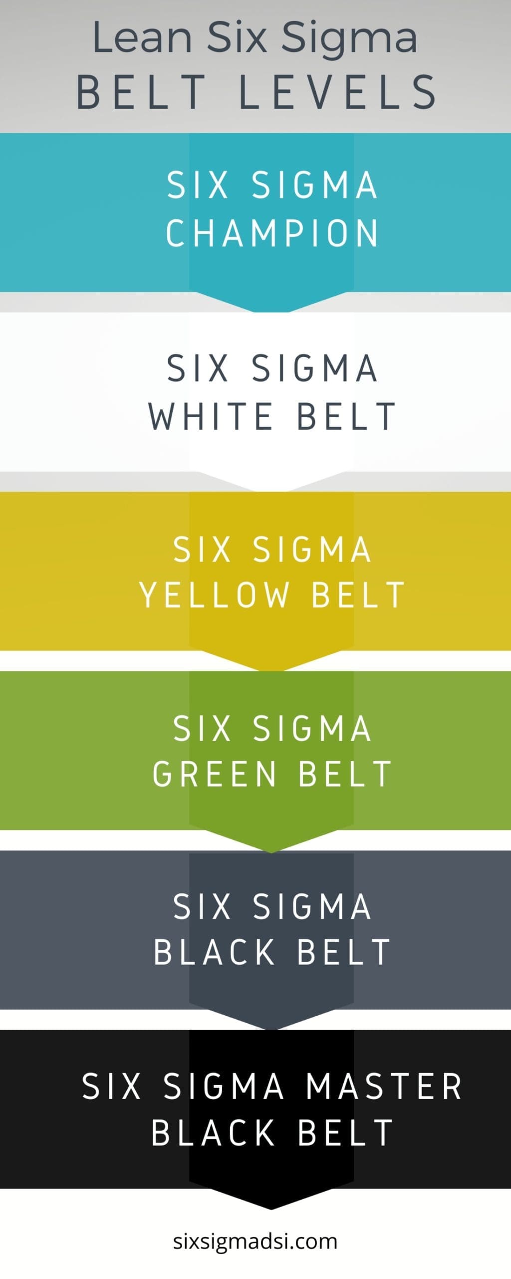 Similar to martial arts belt rankings, you’ll see different belt rankings when you explore different options for Six Sigma certification. The following is the order of ranking: white, yellow, green, black, and master black belt.