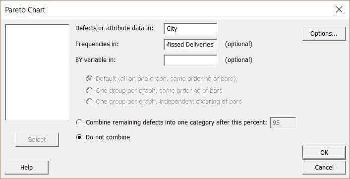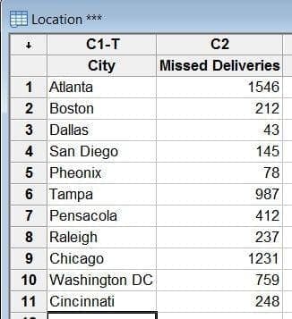 The Pareto Chart shows you that Atlanta and Chicago are where 47.1% of Missed Shipments occur, yet they are only 2 out of the 11 cities.
