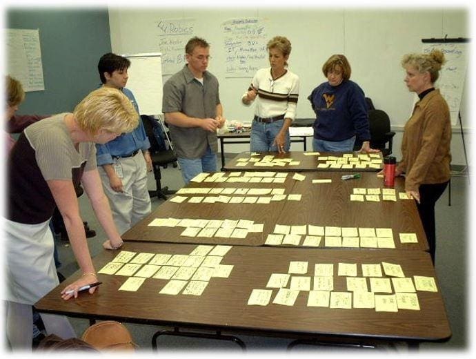 - If the same task truly belongs in more than one cluster, make a second copy of the Post-it note and place in the second cluster