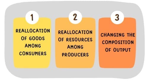 - Reallocation of Resources Among Producers: Efficiency in production refers to how resources are allocated between producers. For an economy to be Pareto optimal, we must distribute factors of production, such as labor and capital, in a specific way. The output of one commodity cannot increase without reducing the output of another.
