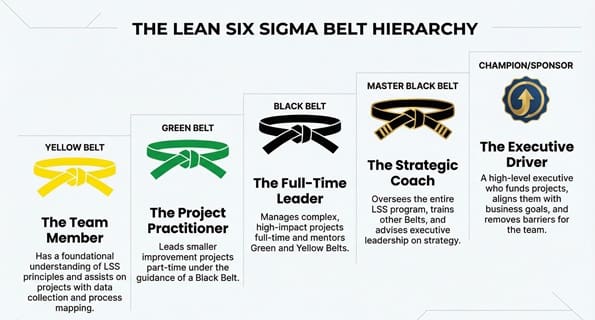 - Structure: The LSS career path follows a clear belt hierarchy—Yellow, Green, Black, and Master Black Belt.