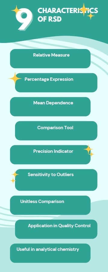 Relative Standard Deviation (RSD) has several key characteristics:
