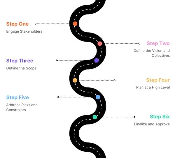 - Define the Vision and Objectives: Write a clear vision and articulate SMART objectives.