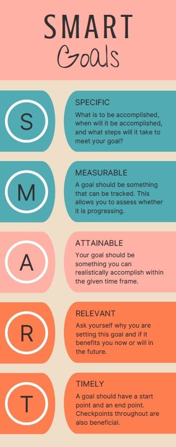 S.M.A.R.T. goals are structured in a way that ensures they are clear and attainable. This method makes it easy to track progress and measure outcomes. The acronym stands for: