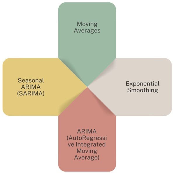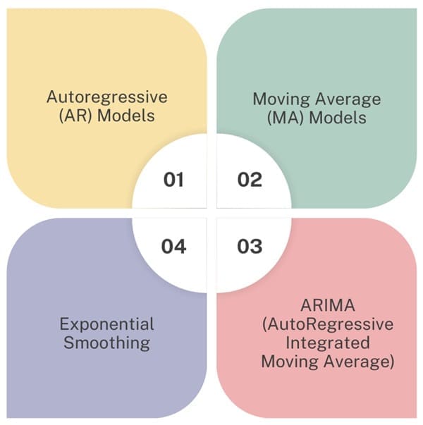 - Forecasting Models: Time series forecasting often involves using autoregressive models or other regression methods. Some common methods include: