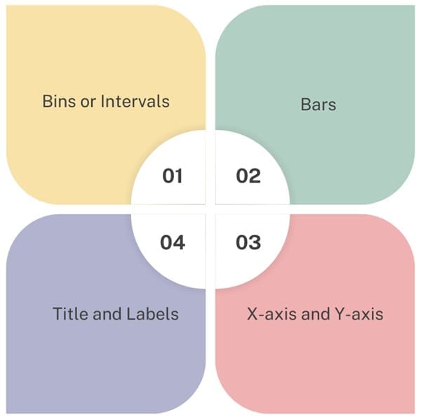 - Bins or Intervals: The data is divided into intervals or bins. Each bin represents a range of values, and the frequency of data points falling within that range is counted.