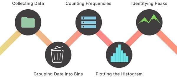 - Plotting the Histogram: Plot the histogram, with bars representing the frequency of data points in each bin.