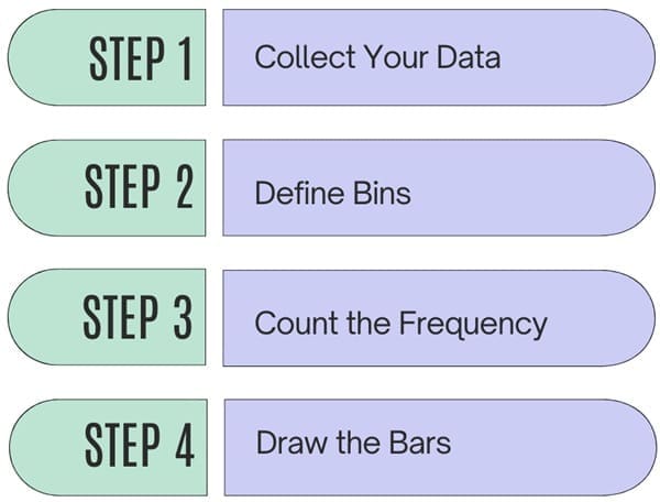 - Draw the Bars: On the x-axis, place the bins, and on the y-axis, plot the frequency for each bin. Draw a bar for each bin, with the height corresponding to the frequency.