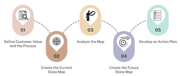 Continuous improvement is a cornerstone of VSM. Organizations must iterate on process improvements, striving for an ideal state where waste is entirely eliminated, and customer value is maximized.