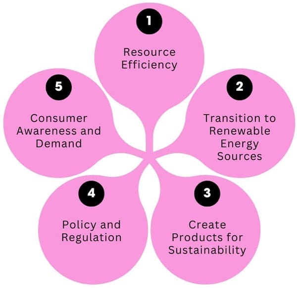 - Circular Economy Integration: Sustainable manufacturing is closely connected with the circular economy concept, which involves using resources for as long as possible before recycling, reusing, or repairing products so as to minimize needing new raw materials and waste generation.