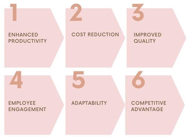 - Improvements are focused on reducing waste, inefficiencies, and redundancies, fostering a culture of problem-solving.