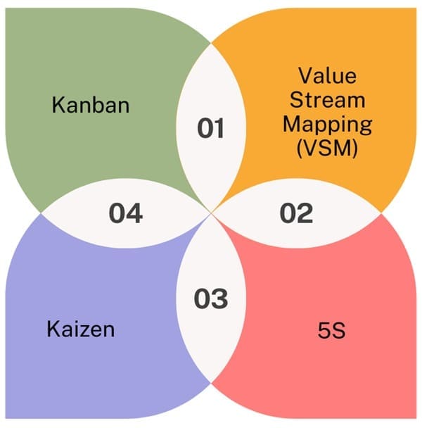 - Value Stream Mapping (VSM): A visual tool used to map out the flow of materials and information in a process. VSM helps identify wasteful activities and areas for improvement.